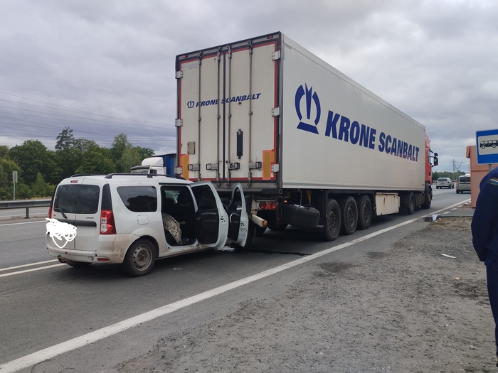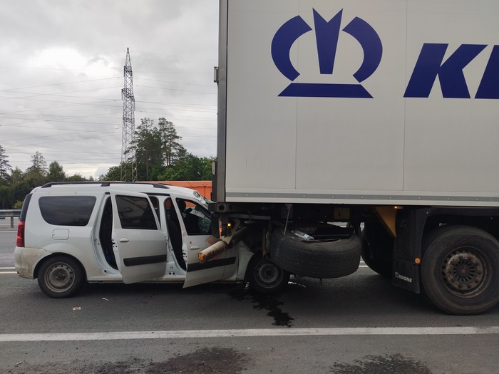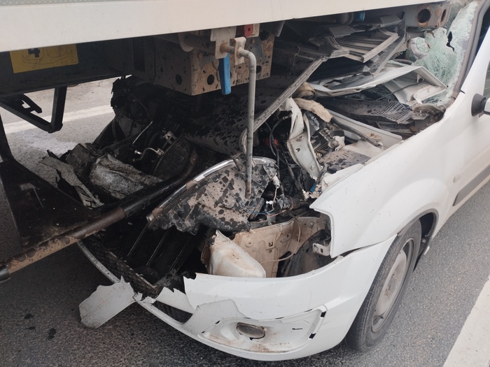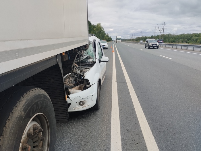 На трассе из Татарстана в Самару в движущийся грузовой автомобиль на высокой скорости въехал легковой автомобиль.