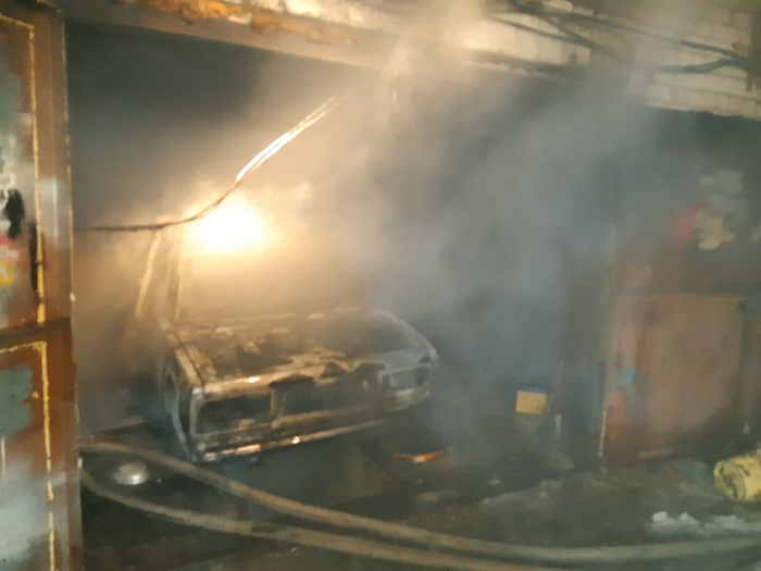 Продолжая подавать воду, мы дошли до капота, мой товарищ, ломом его подковырнул, а залил его водой. В гараже сразу стало холодно. Я был облит брызгами с головы до ног. Развернул пожарный рукав струёй воды прошёлся над въездными воротами, там тоже была полка и тоже что то тлело, так же обдал стену и пол с другого борта сгоревшего автомобиля. Горячая фаза окончена, открытое горение ликвидировано. Следующая фаза разборка-проливка. Надо вытащить из гаража всё что дымит и тлеет, залить водой и бросить в сугроб, что бы наверняка ничего заново не разгорелось после нашего отъезда. Наш начальник, вызвал администрацию гаражного кооператива, надо вскрывать соседние боксы, что бы удостовериться в отсутствии в них огня и дыма, огонь мог проникнуть через щели между боксами.