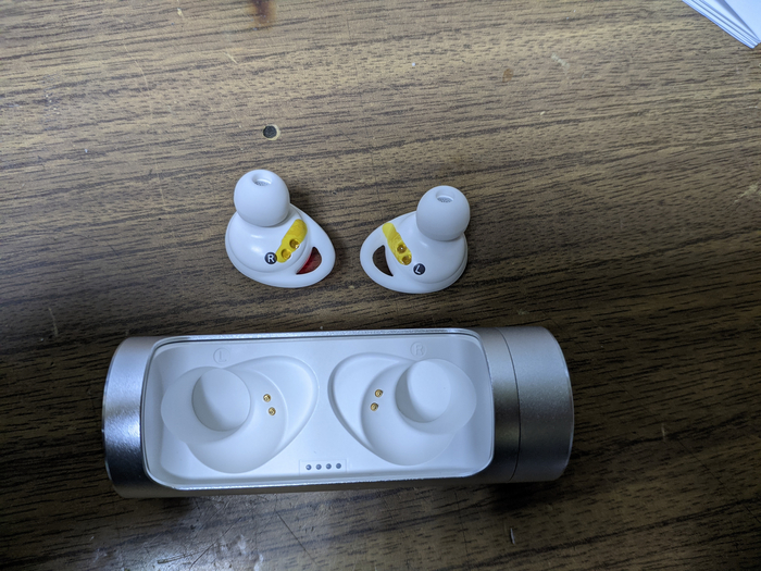 TWS-Гибридные наушники с балансной арматурой, влагозащитой ipX6, активным шумоподавлением и режимом прозрачности, работают на Bluetooth 5.2. Поддерживают AptX, SBC и AAC-кодеки. Из особенностей на кейсе отображается заряд каждого наушника. Цена от 3500 до 4000 рублей