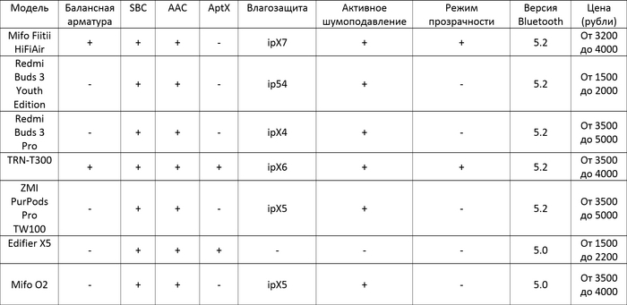 TWS-Гибридные наушники с балансной арматурой, влагозащитой ipX7, активным шумоподавлением и режимом прозрачности, работают на Bluetooth 5.2. Поддерживают SBC и AAC-кодеки. Цена от 3200 до 4000 рублей