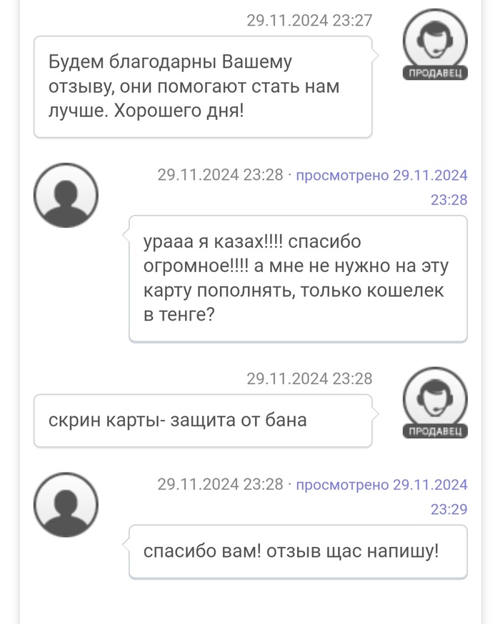 Он поприсылал мне разные скрины, сначала ссылки на свои продукты, промокод (на скидку 5%, кому нужно, скажу продавца и промокод), потом скрин моей временной казахской карты, потом скрин, где я должен оставить отзыв.