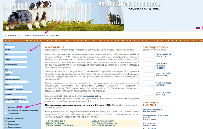 2. Породная база родословных - это такой специфический сайт, где увлечённые люди публикуют фото и родословные своих собак, помёты, страницы питомников, результаты выставок и тд. Кладезь информации для породников, и совершенно непонятная ерунда для простовладельцев. И тем не менее на примере базы австралийских овчарок: