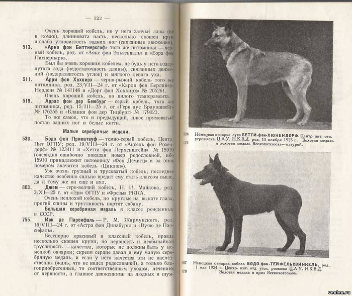 Ещё одна занятная страница. Во первых демонстрирующая, что в 20-ых годах прошлого века в России встречались грюнендали, во вторых - тигровый окрас у суки по кличке "Веста". Действительно, в одном из стандартов уже восточноевропейской овчарки (не вспомню 1964 или 1955 годов) был допустим тигровый окрас.