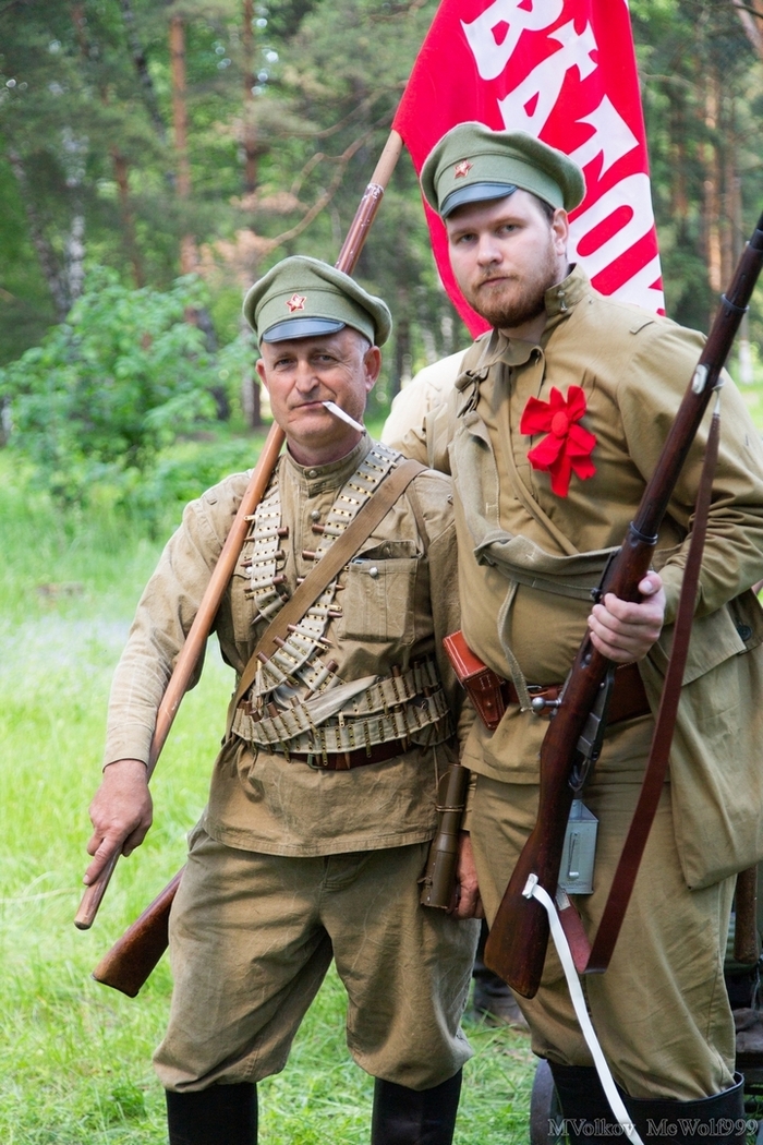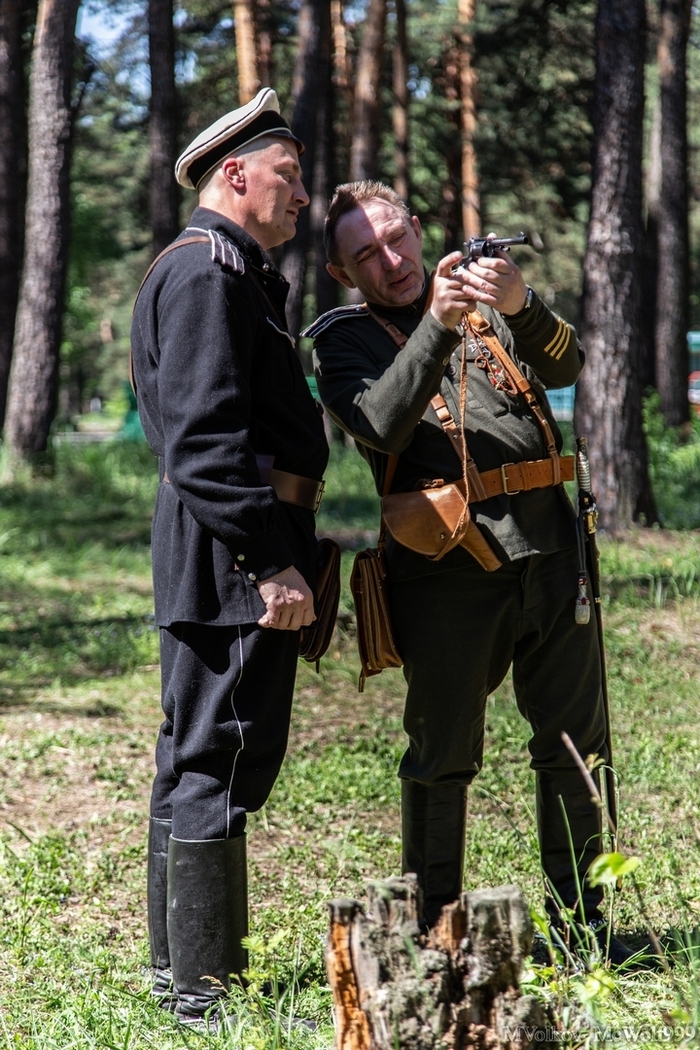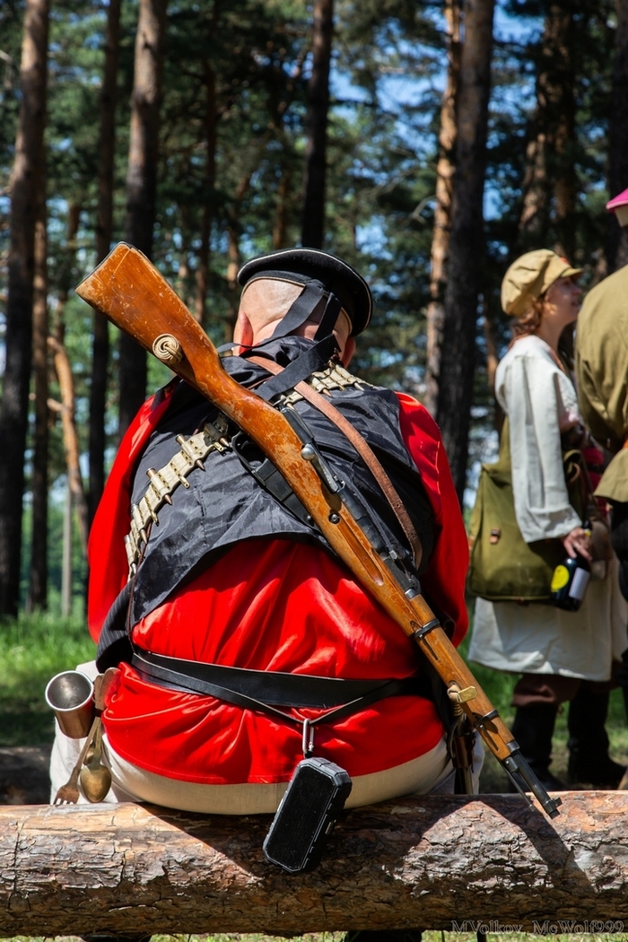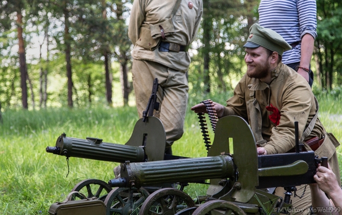 Модель нашлась, ещё привела своего парня, на которого тоже одели пулемётную ленту и выдали наган. Вот так зайдёшь куда-то посмотреть на фотографов, оглянуться не успеешь, как уже идёшь в самоубийственную атаку на танки. Фотографы - опасные люди! Ещё когда выгружали пулемёт из багажника, мимо шли какие-то мужики. «Ни фига себе» - только и сказали мужики.