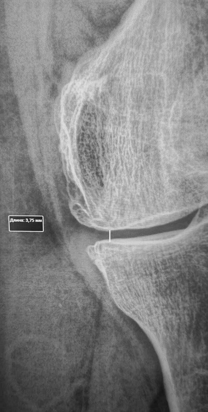 Визуализируется горизонтальная линия просветления в дистальной трети диафиза левой локтевой кости(перелом),выраженное разрастание периостальной костной мозоли вокруг линии перелома, ось кости сохранена, контуры отломков локтевой кости склерозированы. Заключение: Ложный сустав(псевдоартроз) левой локтевой кости.