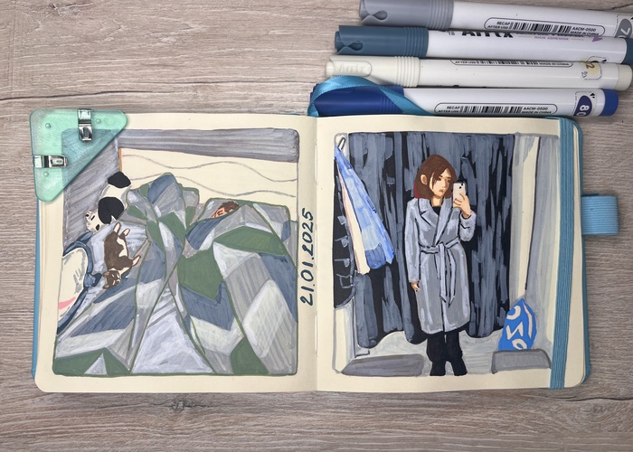 влюбилась в эту форму изложения когда листала пинтерест. такой комикс с персонажами и переходами✨и очень понравилось сочетание линеров и цветных маркеров... ну а так же мои любимые блёстки🤌🏼✨