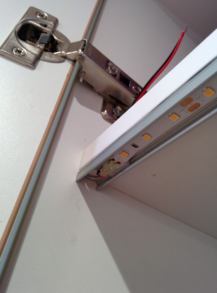 P.S. В комментах интересовались, почему бы не использовать концевые выключатели или герконы вместо ИК. Цена тут не вопрос, экономия была бы копеечная. Но вот стиль мне сейчас очень нравится. Никаких лишних деталей не торчит, открываешь дверки и бесшумно неизвестно почему включается свет. Да, возможно, магнитные датчики надёжнее, но сейчас с моей точки зрения просто более стильно.