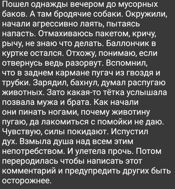 67 DenimDef Скриншоты комментов Серия Screen Следи за собой 10 дней назад Показать полностью 1 Бродячие собаки Опасность Скриншот Нападение собак Зоозащитники Осторожно Негатив Комментарии 34 14 Ещё 0