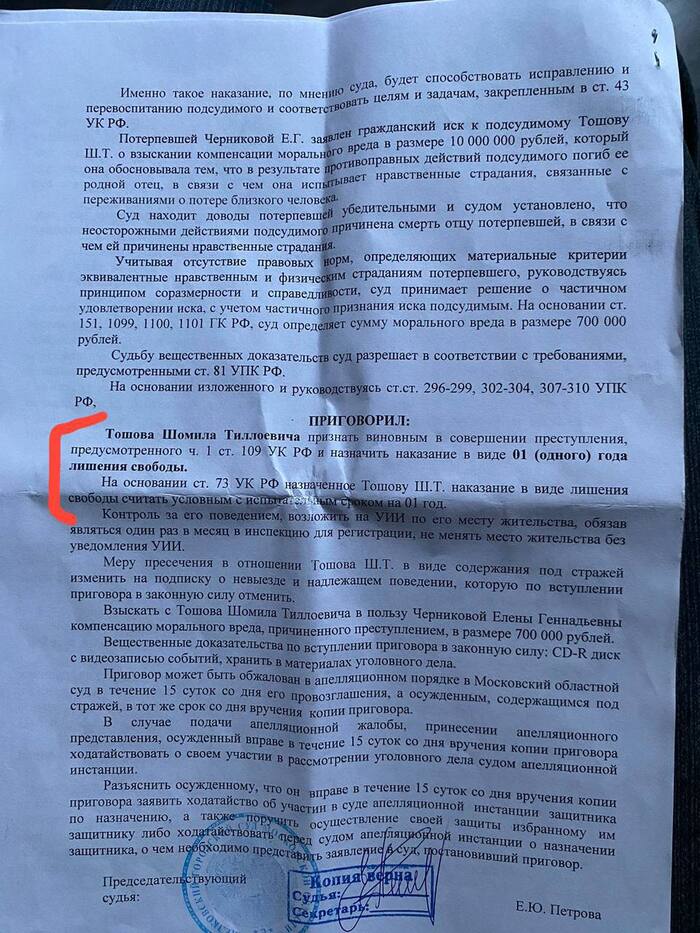 Полицейский в гражданском пытался уладить конфликт между приезжими и охранником. В ответ на просьбу «успокоиться», он сразу же получил оскорбления и сильные удары в лицо. Ситуацию удалось остановить только после предупредительного выстрела в воздух.