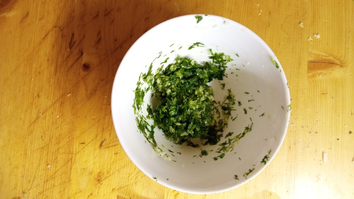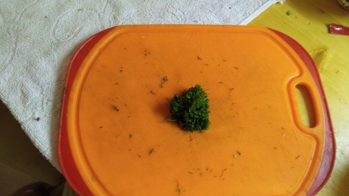Солидный такой пучок кинзы/ петрушки/ базилика или вашей любимой зелени. У меня кинза.