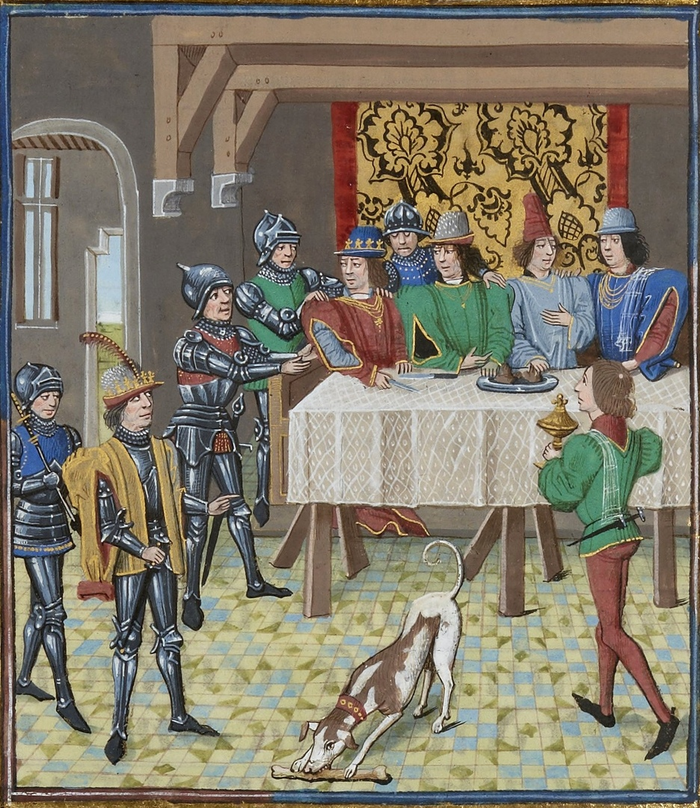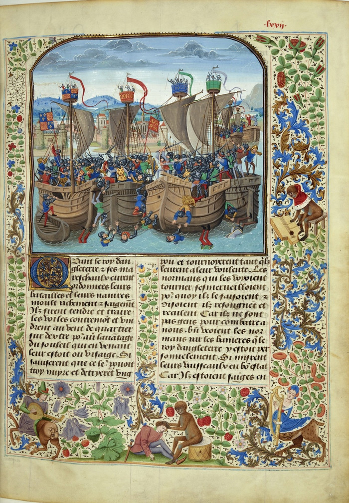 Страница из Хроник Фруассара, рассказывающая о сражении у Слейса, особое внимание обратите на поля