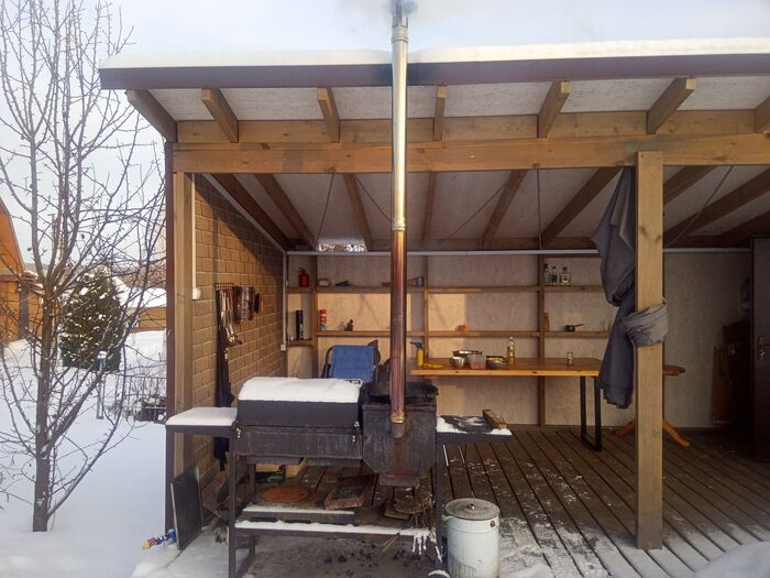 Ну вот и прошло два года, как мы построили террасу. Решили помыть и немного передвинуть бассейн, так как купили для него купол.