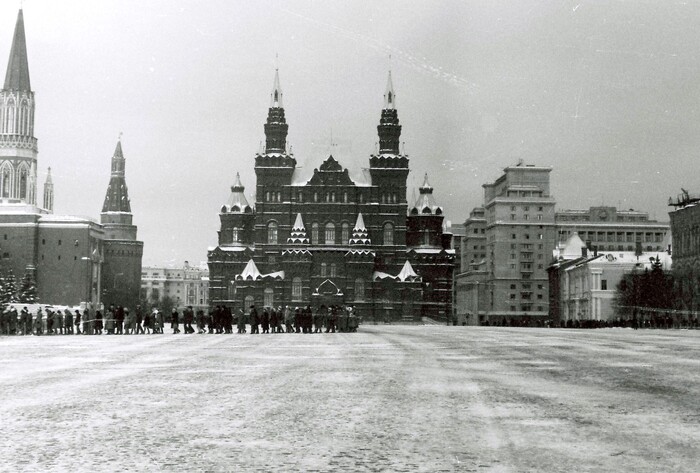 В этот вечер Красная площадь запомнится на всю жизнь. Вся Красная площадь была освещена прожекторами и сквозь пелену снега выглядела очень величаво. Мы стояли и смотрели смену караула у поста номер один у мавзолея Владимира Ильича Ленина. Затем мы прошлись по ГУМу и уехали на турбазу.