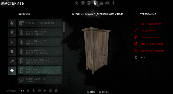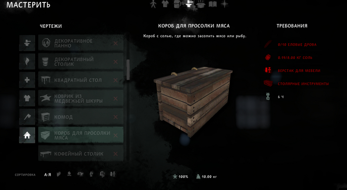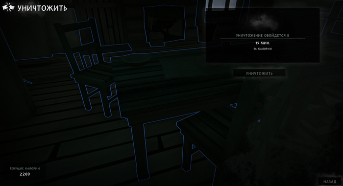 Эти предметы можно либо переместить, либо поместить в инвентарь( об этом позже), либо уничтожить. Уничтожение происходит быстро, но вы не получите за это ресурсов, например стол разобрать на доски нужно полтора часа, а для уничтожения всего 15 минут.