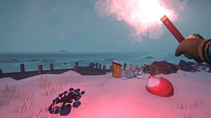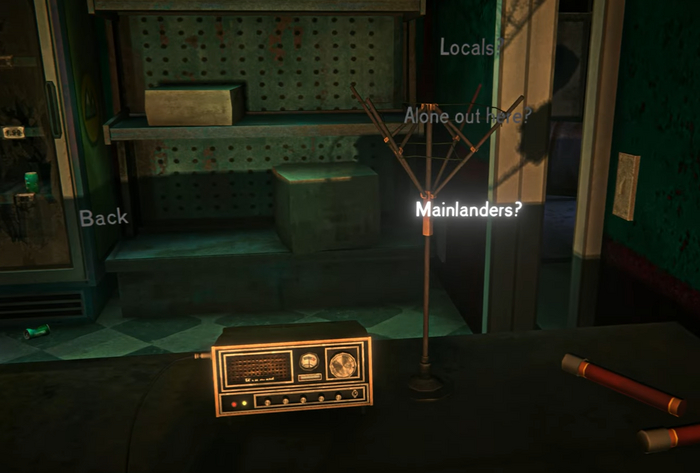 В игре появились новые радиоприемники, что активны при северном сиянии. Через него мы можем разговаривать с таинственным торговцем, который не может или не хочет выходить на берег, но что-то ищет на острове.