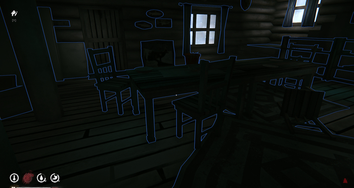 Войдя в режим редактирования все предметы интерьера будут с синим контуром(что поможет в полной тьме без лампы ориентироваться)
