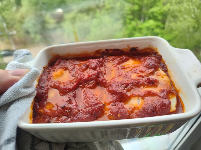 Рецептов из минтая оказалось не так уж и много. На десятый раз пришлось придумывать свой. Перепробовав кучу вариантов, я понял, что лучшее сочетание для минтая — это картофель, сливочное масло и яйцо. Но хотелось ещё и обыграть саму квадратную форму продукта.