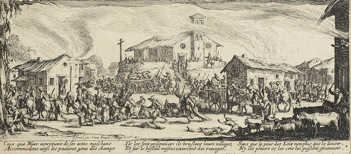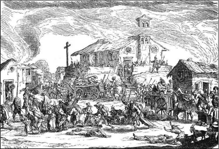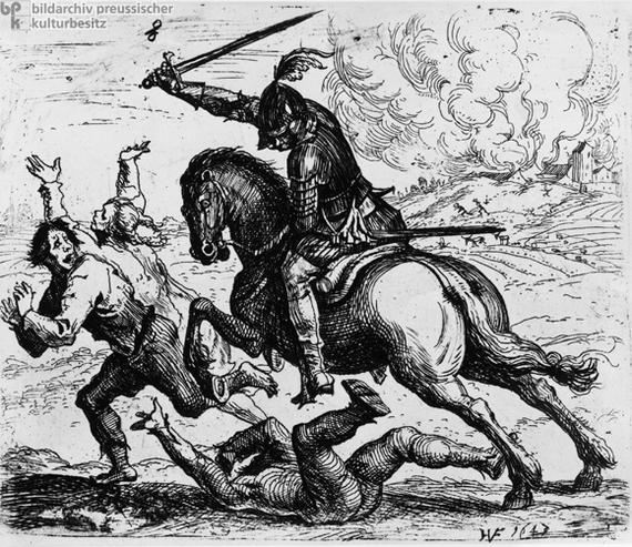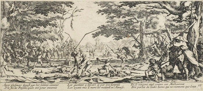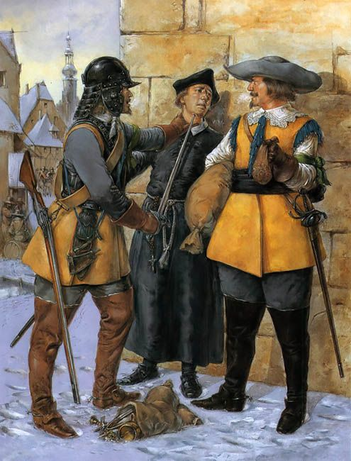 За кошку дрались, за яйцо могли убить, обладатель коровы без верных товарищей и запаса пороха был очень богатым смертником. Крестьяне в зоне боевых действий превратились в монстров выживания, способных есть все, что не может убежать, спать с открытыми глазами, за милю учуяв по запаху приближение войска; спрятать последнюю козу в дупле и с честными глазами говорить, что ничего не имеют, даже когда ландскнехт ножом резал ребенка на глазах родителей и вставлял отцу семейства пороховой заряд в анус. Существовала, правда, и другая модель поведения — это когда в деревне было больше мушкетов, чем людей, в городе бюргеров штрафовали за плохое состояние личного оружия, а поход ландскнехтов за пожрать превращался в боевую операцию с сотнями участников и огнестрелом у обеих сторон. Все, кто не умел выживать либо так, либо этак, уже умерли с голоду.