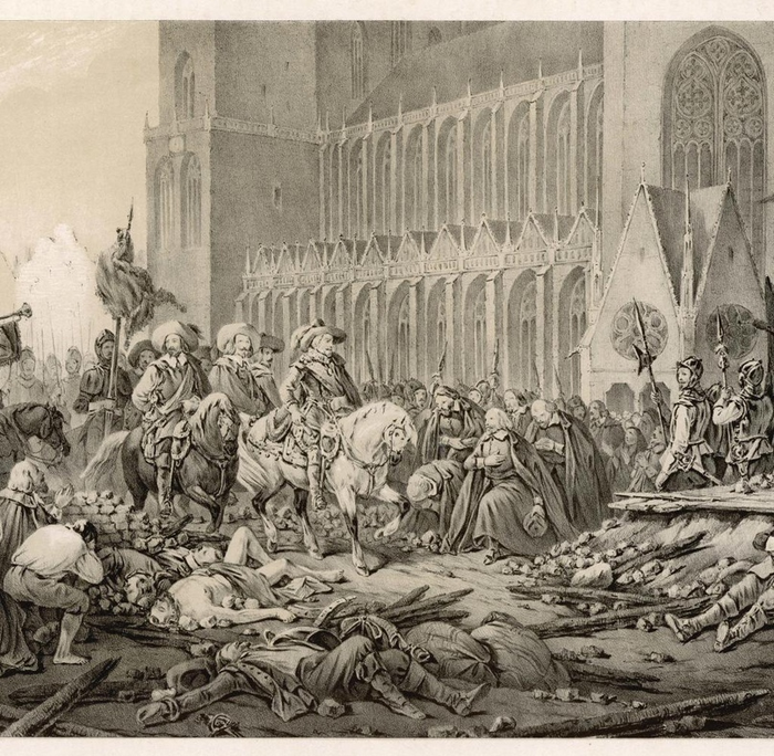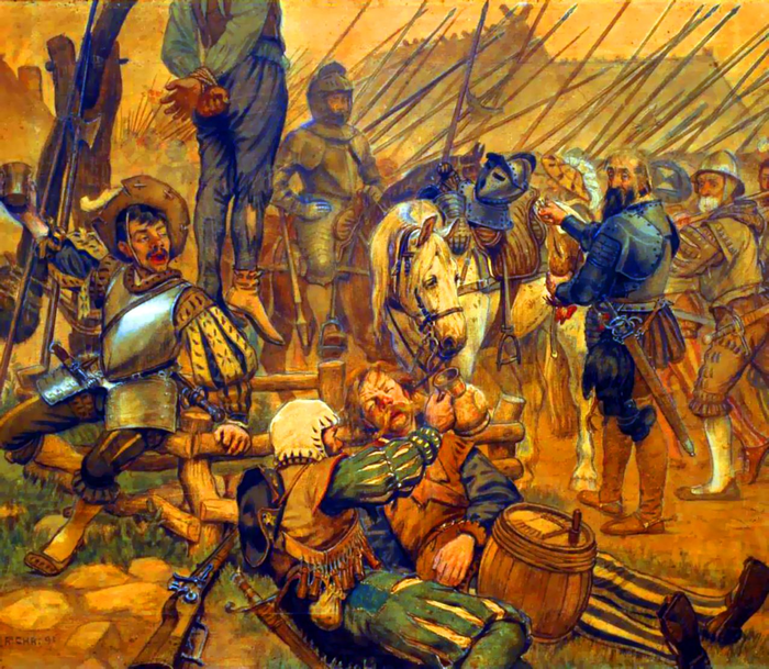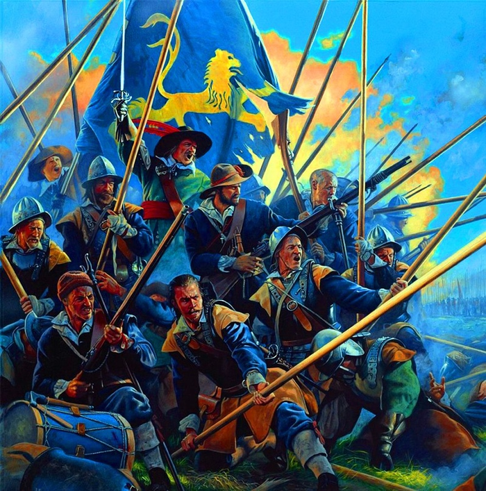 Кстати, раз уж заговорил о Конде. Этот парень запомнился не только Рокруа. Он же — настоящий автор мема «Бабы новых нарожают». Произошло это в 1644 году при Фрайбурге, когда он месился с баварскими имперцами. Те настреляли огромное количество французов (суммарно иногда пишут про 15 тысяч потерь за три дня, но применительно к поздней Тридцатилетке это невероятно, такие цифры следует читать просто как «до хрена и больше»), и когда Конде сказали, что может, не стоит продолжать в таком стиле, он заявил, что в Париже за ночь столько же настрогают. «Кондеевская трехрядка», кстати, принесла успех: в какой-то момент баварцы от такой войны истомились, растратили боеприпасы и свалили, несмотря на соотношение потерь примерно 4:1 в свою пользу. Ну, а «бабы новых нарожают» — это следует понимать «парижские».