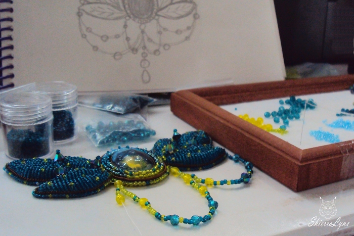 Работа в целом несложная - браслет в технике ткачества и подвески в технике низания.