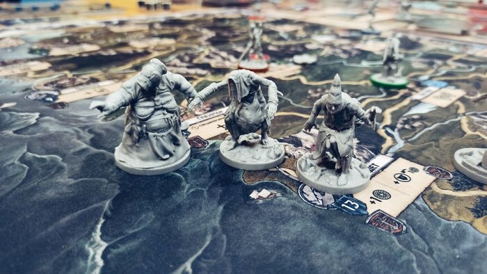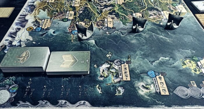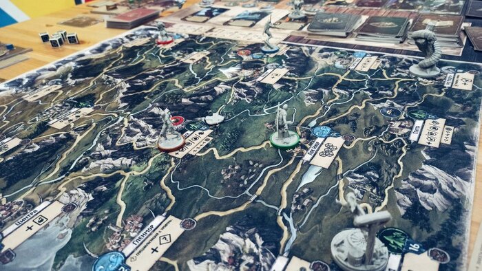 В первую фазу мы договариваемся о планах и перемещаемся в те локации, которые позволяют нам карты. При этом все ведьмаки могут ходить одновременно. Оказавшись в локации с гончей, ведьмаки могут вступить с ней в бой.