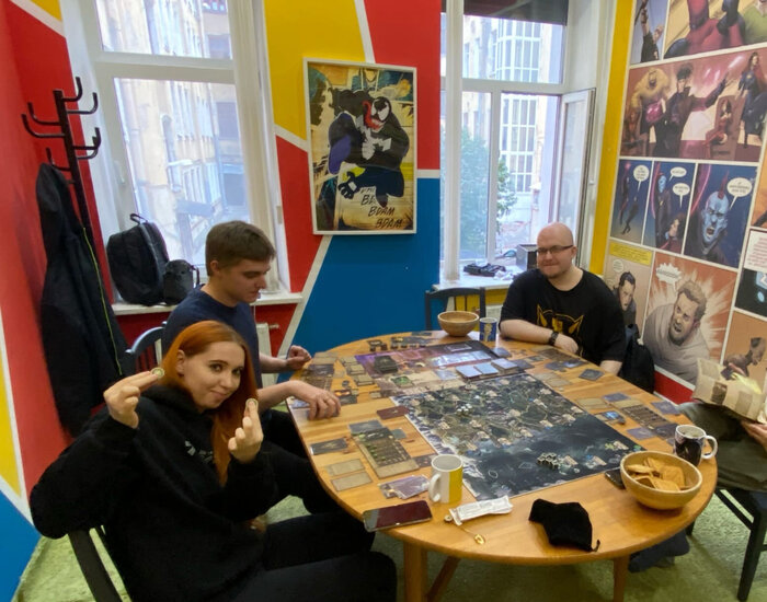 После того, как бои и медитации окончены, в этой же второй фазе происходит общее исследование. В кооперативном режиме обычные исследования убраны, а на столе появляются синие карты исследований.
