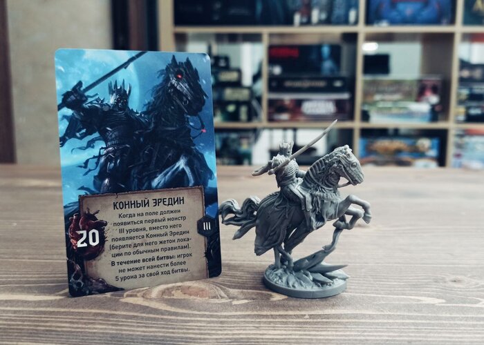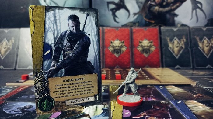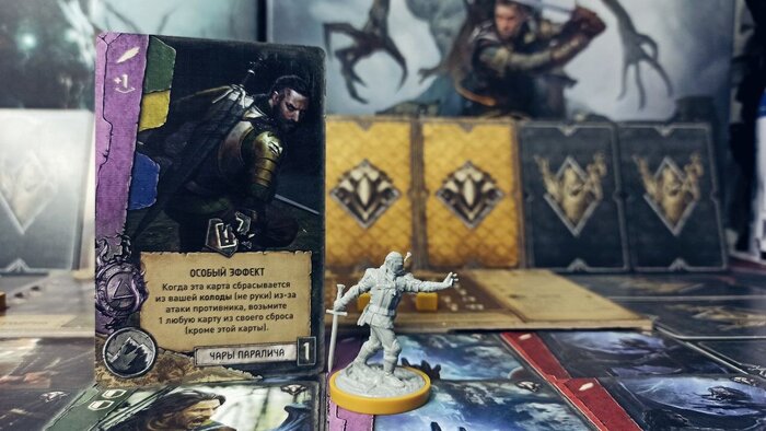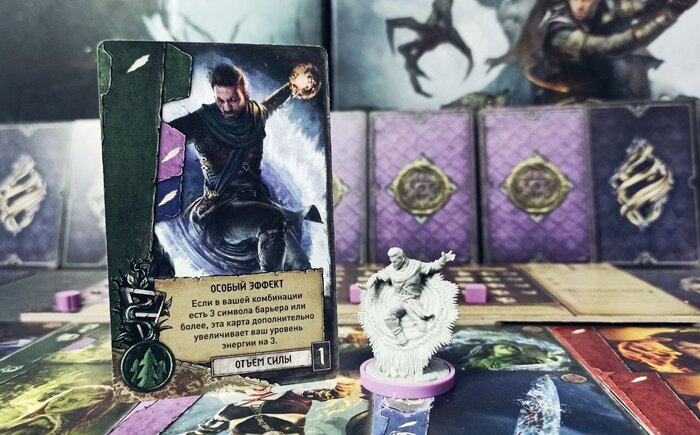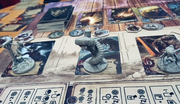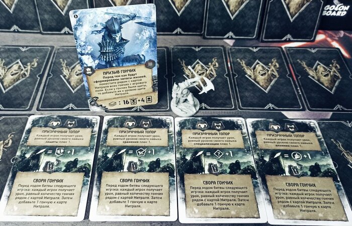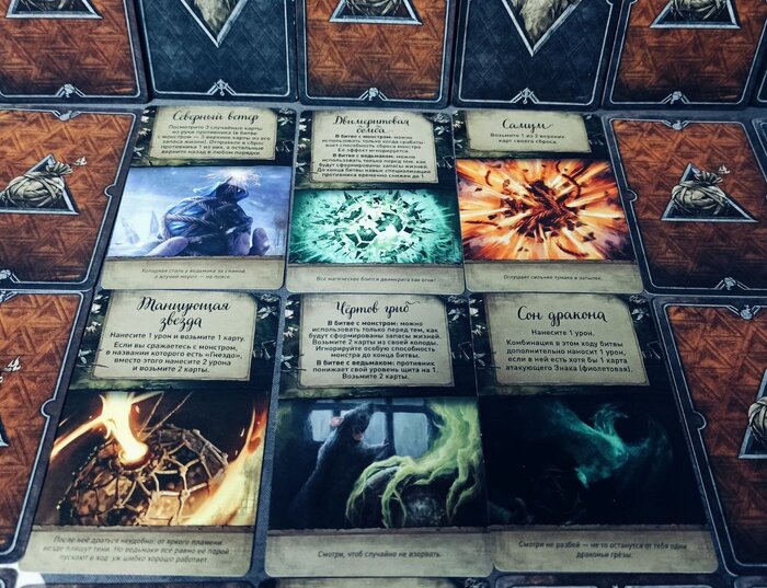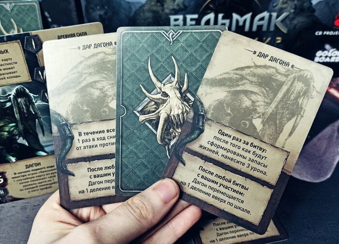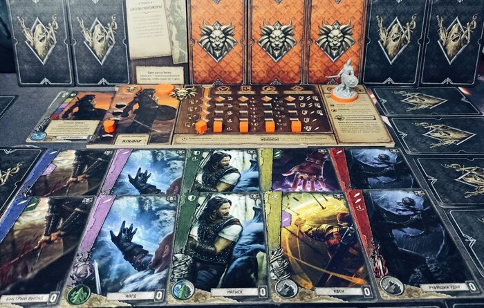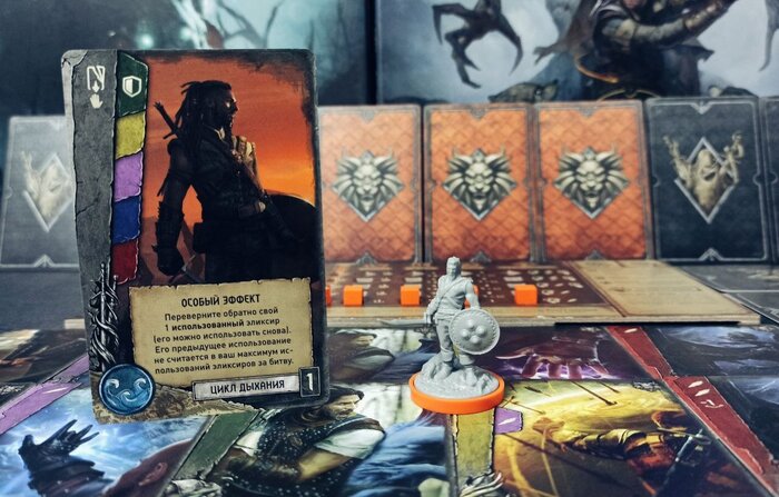 И так ведьмаки 6 раундов пытаются стать сильнее, чтобы в седьмом начать битву с боссом. Перед битвой все ведьмаки перемещаются в одну локацию к всаднику, подготавливают свои колоды. Босс активирует свою способность перед боем, которая находится на обратной стороне его карты.