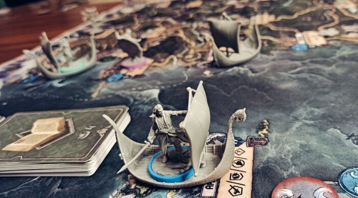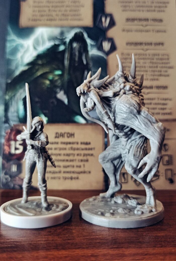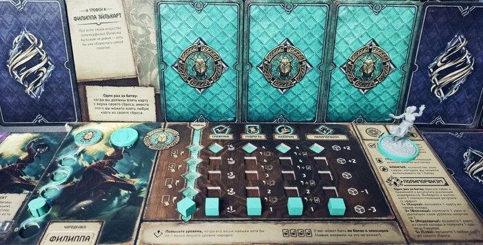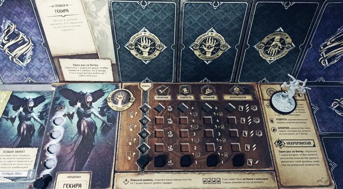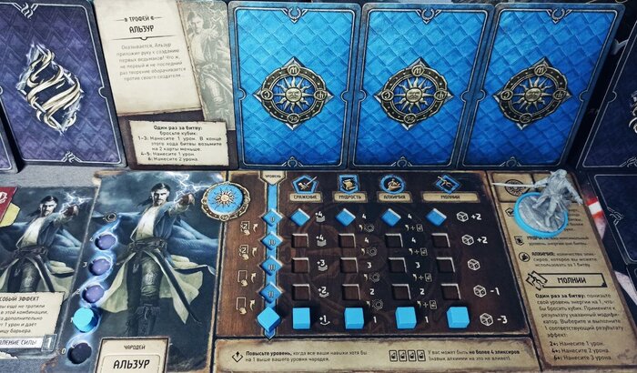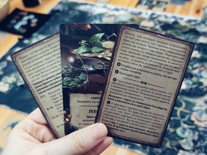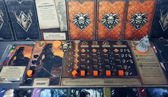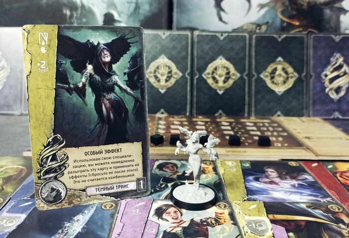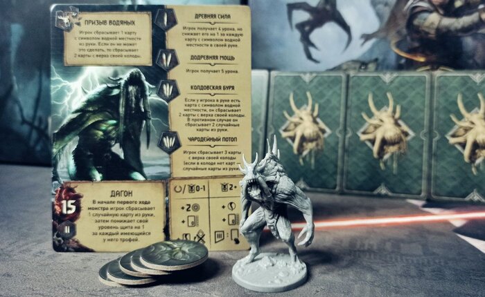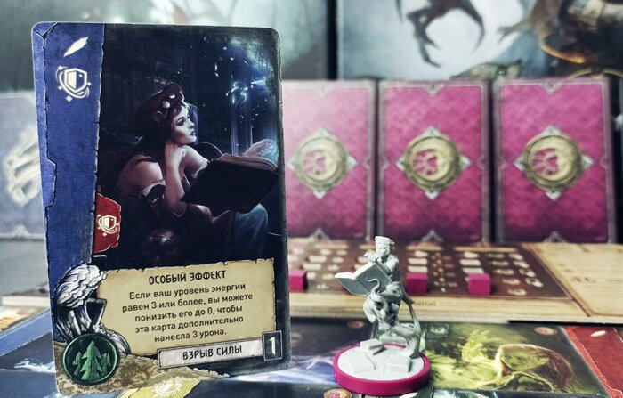 И так ведьмаки 6 раундов пытаются стать сильнее, чтобы в седьмом начать битву с боссом. Перед битвой все ведьмаки перемещаются в одну локацию к всаднику, подготавливают свои колоды. Босс активирует свою способность перед боем, которая находится на обратной стороне его карты.