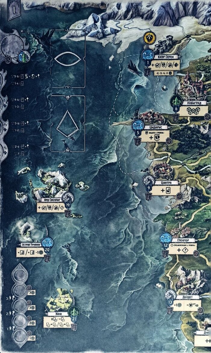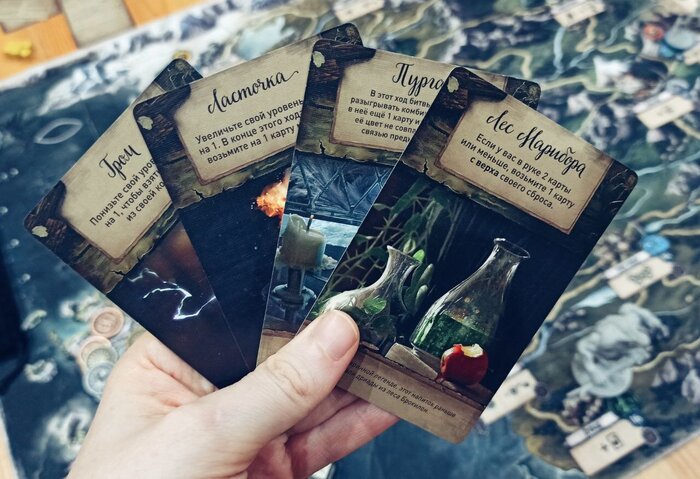 Один из игроков в нашей партии играл за Цири. Поэтому мы быстро сообразили, что в первую очередь отправляем Цири бить монстра, а сами все идём активно помогать. Так в самом начале у нас у всех была способность Цири, когда ты можешь продолжить комбинацию любой картой, даже если она не подходит по связкам.