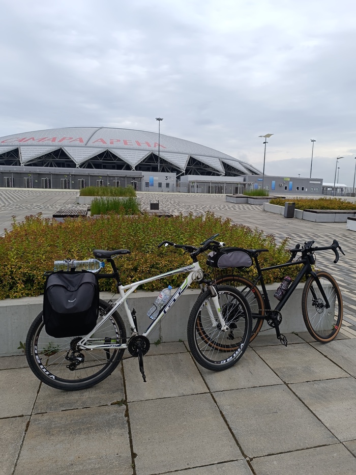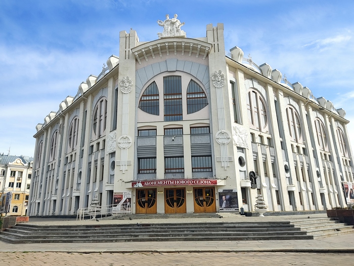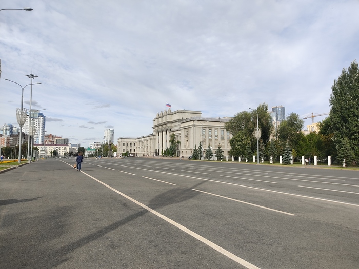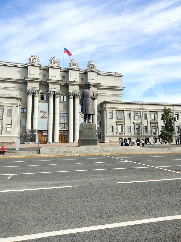 Проезжаем через одну из главных достопримечательностей Самары - площадь Куйбышева. Там уже во всю собирают сцену для празднования дня города.