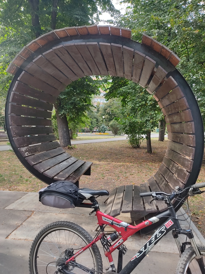 Следующую остановку сделали уже в сквере Мичурина, где установлены "лавочки" необычной формы.