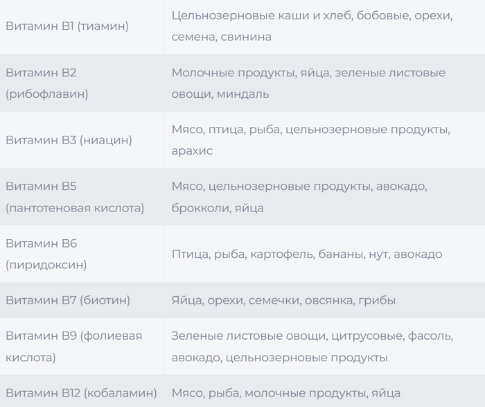 • витамины группы В: помогают восстановить энергетический баланс, укрепляют нервную систему и улучшают общее состояние организма;