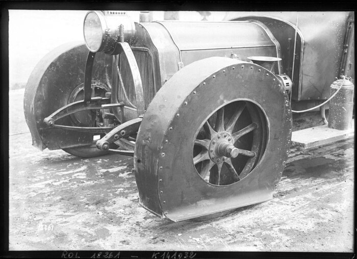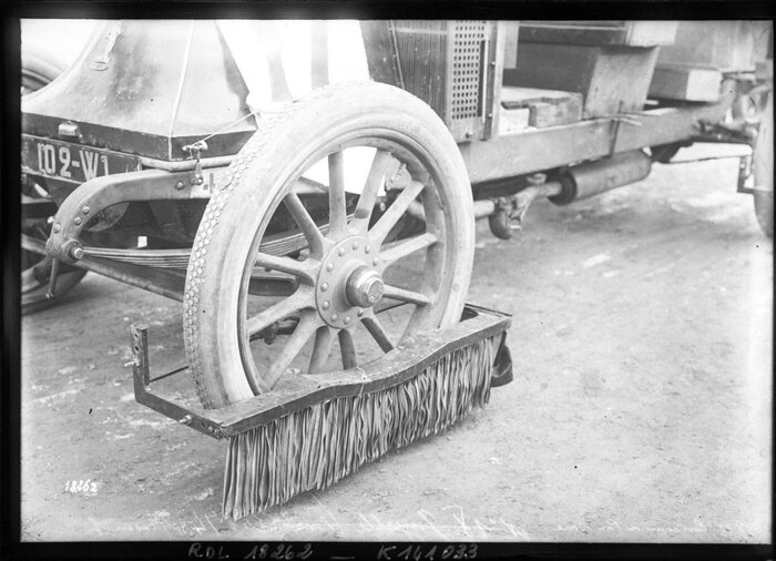 В 1913 году полиция Парижа из-за большого количества жалоб пешеходов, организовала конкурс для изобретателей боковой защиты от брызг из-под колёс автомобиля. Машины с разными видами защиты ездили по лужам и грязи вдоль установленных белых панелей. По оставшимся на них брызгам определялся победитель, изобретение которого должно было быть установлено на всех дорогах Франции.