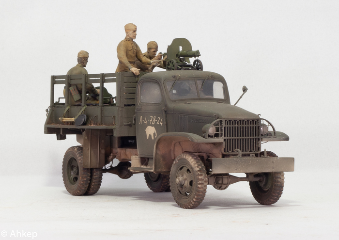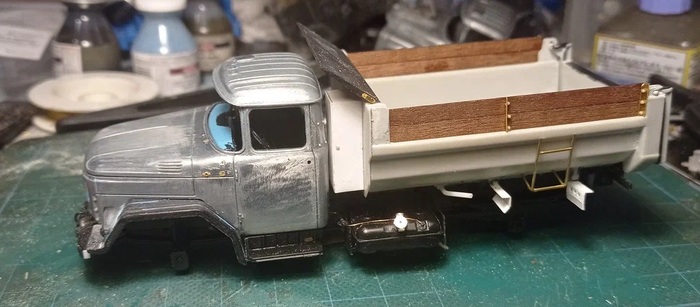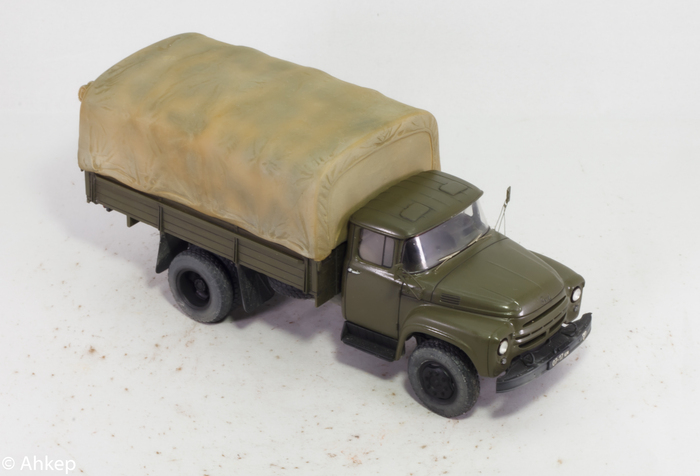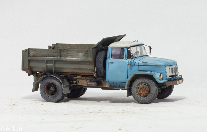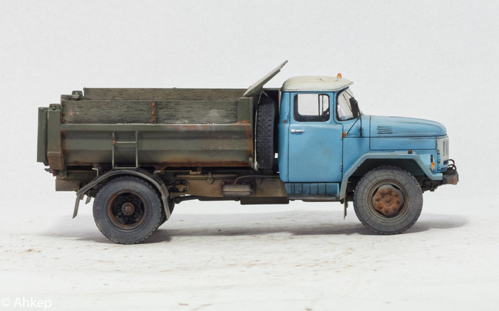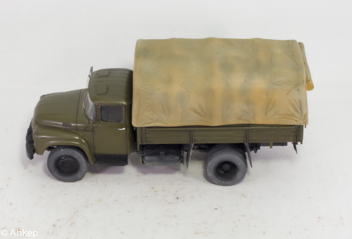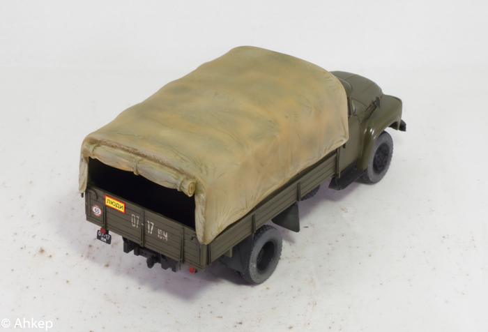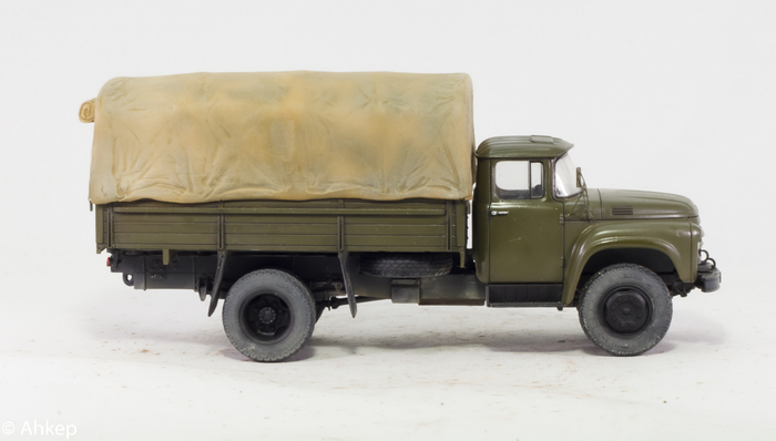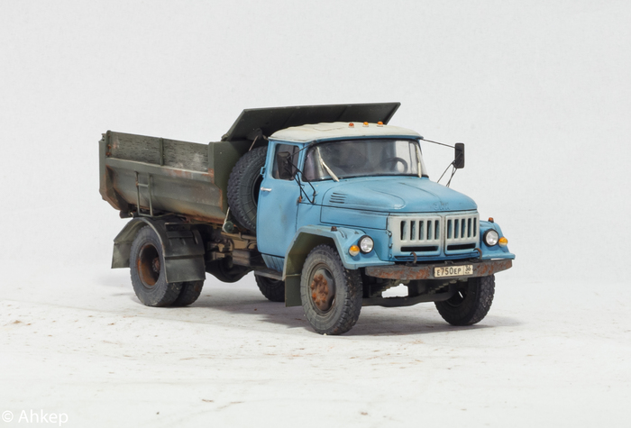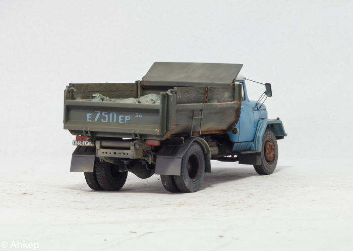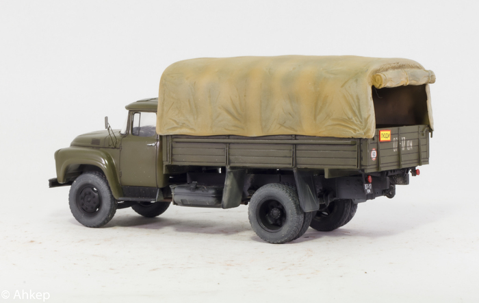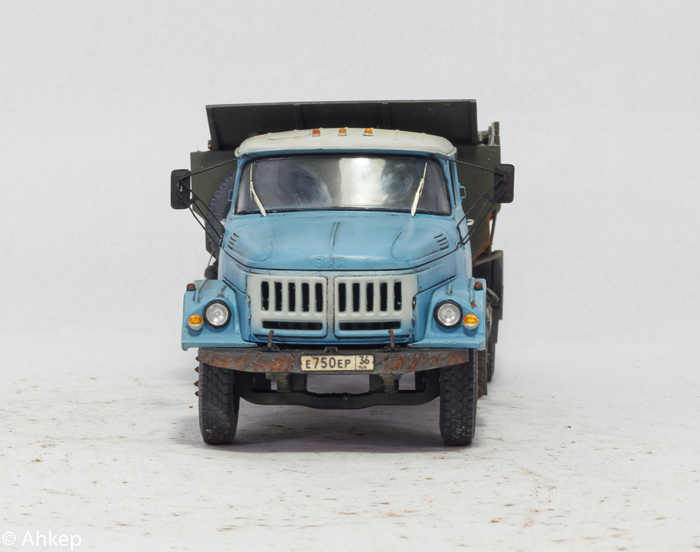 Ручки, зеркала, дворники. Оптика так же, как и на 164-м, передние фары сам, остальное на тот момент еще не было готово, поэтому брал ТриА и CCT. А еще и решетки фар пришлось делать, родные тоже в мусор. Бампер, кронштейн запасного колеса, баки - все 3Д.Даже знак автопоезда нарисовал сам(но тут больше от того, что в запасах не было купленных у других производителей)