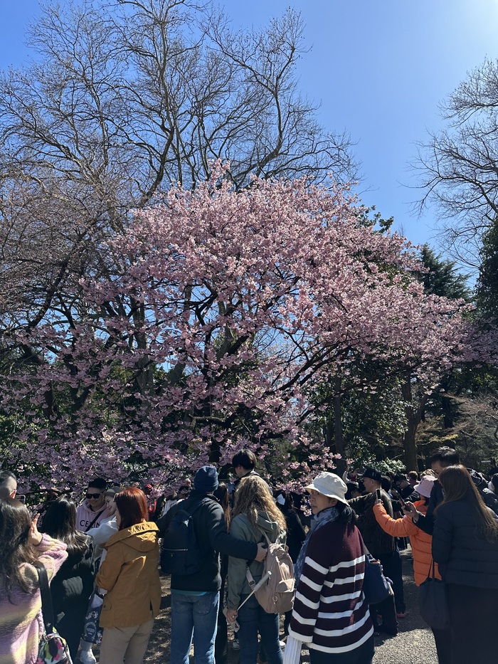 В этом году мы приехали немножко рано - на прошлой неделе сакуры в Токио почти не было. Но с 31 марта она начинает распускаться.