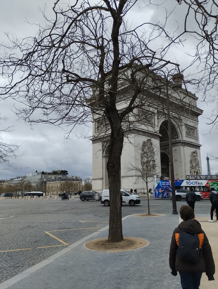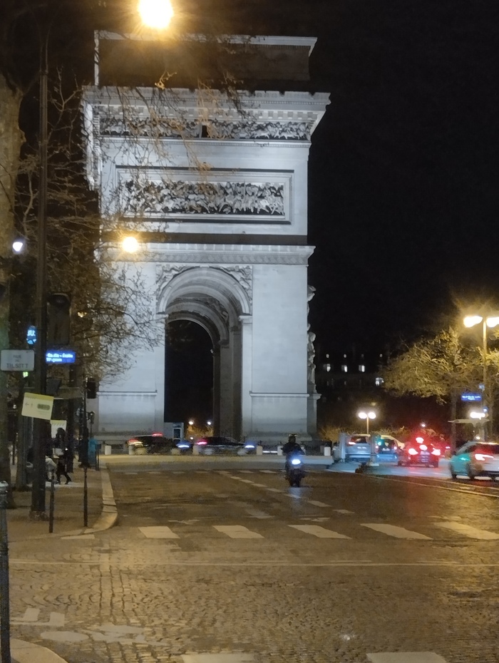 Прогулявшись после салюта по магазинам с сувенирами, пошли на поезд в город. В полночь были уже в Париже, а до автобуса ещё три часа. Из метро вышли недалеко от Триумфальной арки и сразу нашли кафешку. Просидели там два часа, дети даже позасыпали в удобных креслах. К моменту выхода из кафе начался проливной дождь. Сотрудниками кафе были предложены зонты. На наше сожаление, что мы не сможем эти зонтики вернуть обратно, сотрудники жестами по казали, что это подарок))) Душевные люди)