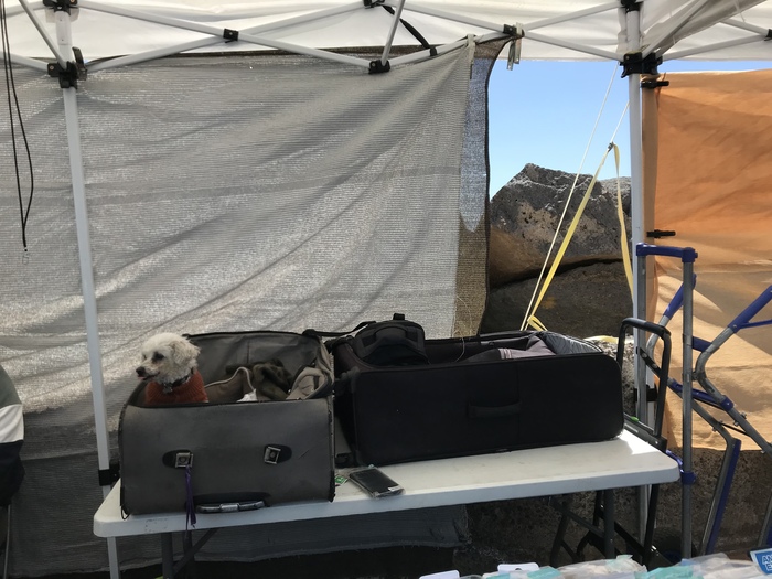 28.03 попыталась проснуться пораньше, получилось. В 9.10 я уже была у рыбного магазина. Тунца не было. Грустно. Сразу пошла в соседний город, в надежде , что там будет тунец (летом 2024 года мы его там покупали почти каждый день). Прошла по шикарной набережной Поле для Гольфа (местная достопримечательность). Вышла к пустынной местности. Много тропинок, они ведут к горе Монтана Амарилья. Мне туда. За горой городок, в который мне нужно сегодня попасть. В этой «пустыне» обнаружила хижину из камней. Вполне обустроенное жилище со своим внутренним двориком за забором, пластиковой садовой мебелью.