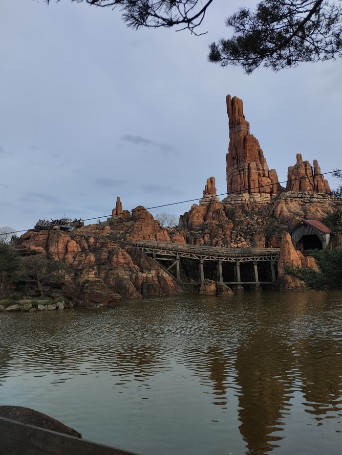 Карту парка я изучила заранее. Она может быть в электронном виде или бумажном. Сразу пошли на Big Thunder Mountain - промчаться через золотой рудник в вагонетке с головокружительной скоростью. Садимся в вагонетку в красивом старинном деревянном «сарае». Мчимся по подземелью ( как оказалось, вообще под водоёмом), выезжаем на огромную гору и начинаем носиться по серпантину этой горы. По-моему, там даже мертвая петля была!!! Прежде, чем получить это удовольствие, пришлось постоять а очереди около часа. Но это того точно стоит!!! Время в очереди не скучное: это как экскурсия по этому старинному «сараю», много разных интересных тематических штучек про золотые рудники.