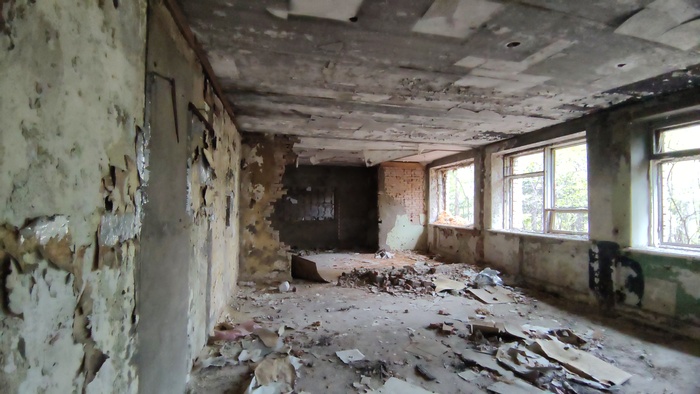 В этот городок мы пробирались около 2.5 км пешком,так как посреди дороги на эту заброшенную в/ч ,была перекрыта.По приходу туда нашли логово "чёрных лесорубов" и следы медведя, что очень нас насторожило, они были свежими.Немного походив там, мы решили от туда дать деру да и пробежать почти 3 км до машины.В самой в/ч особо делать нечего, практически все расдестроино...