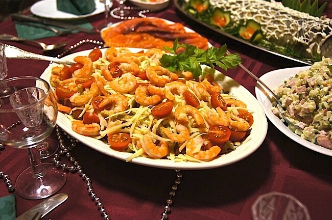 Салат с креветками, типа салата "Цезарь", но, немного изменен.