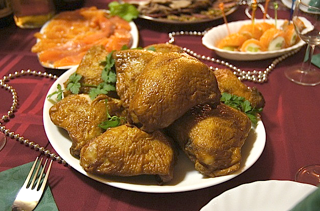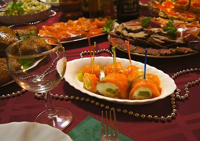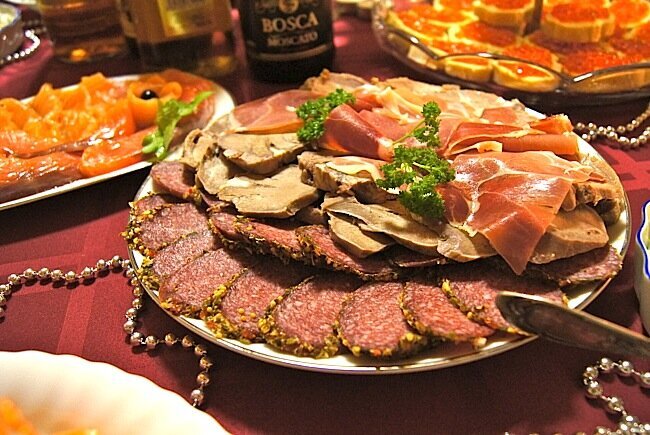 Пармская ветчина, колбаса в острой панировке, а из домашнего был вареный говяжий язык.