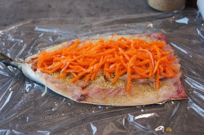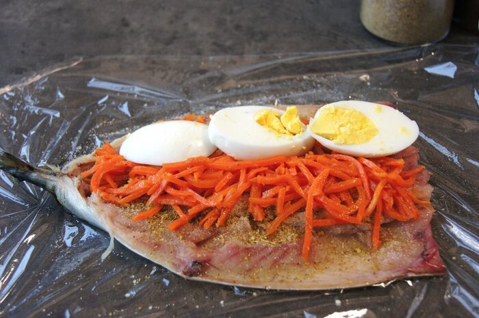 Рыбку фаршировал муж сестры, очень хороша была, ну и конечно же я взяла рецепт и затем приготовила сама.