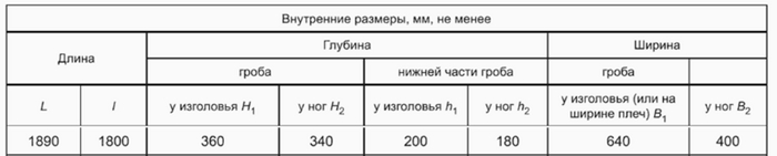 Размеры гроба берем из ГОСТ Р 58392-2019 Услуги по изготовлению гробов для захоронения и кремации