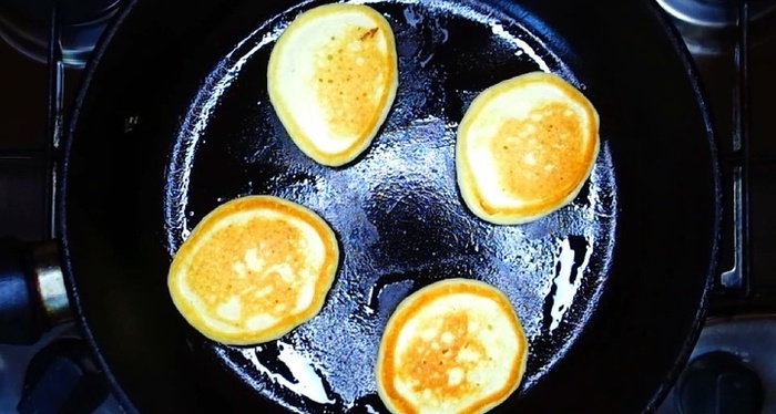 Обжарить оладьи на не большом огне с двух сторон до золотистости.