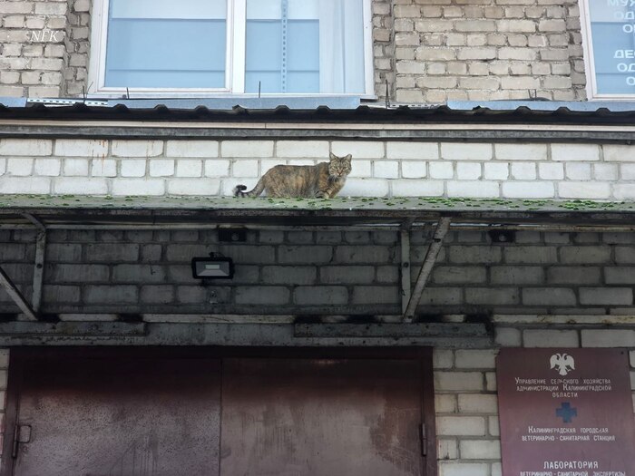 Этот ветеран университетского двора обитает на территории корпуса БФУ — и чувствует себя здесь полноправным хозяином. Несмотря на боевой вид и загадочный слепой глаз, у него есть всё необходимое: уличный домик для отдыха, регулярные порции еды и внимание студентов, всегда готовых приласкать сурового сторожа.