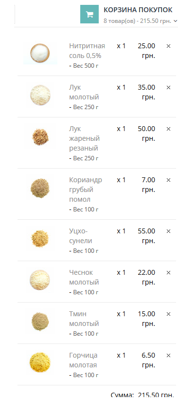 - грибной порошок (шампиньоны) — 12гр.