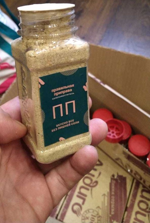 После отработки рецептуры, заказал на производстве 200 баночек приправы — 16 кг. Нужно же вкусно питаться)