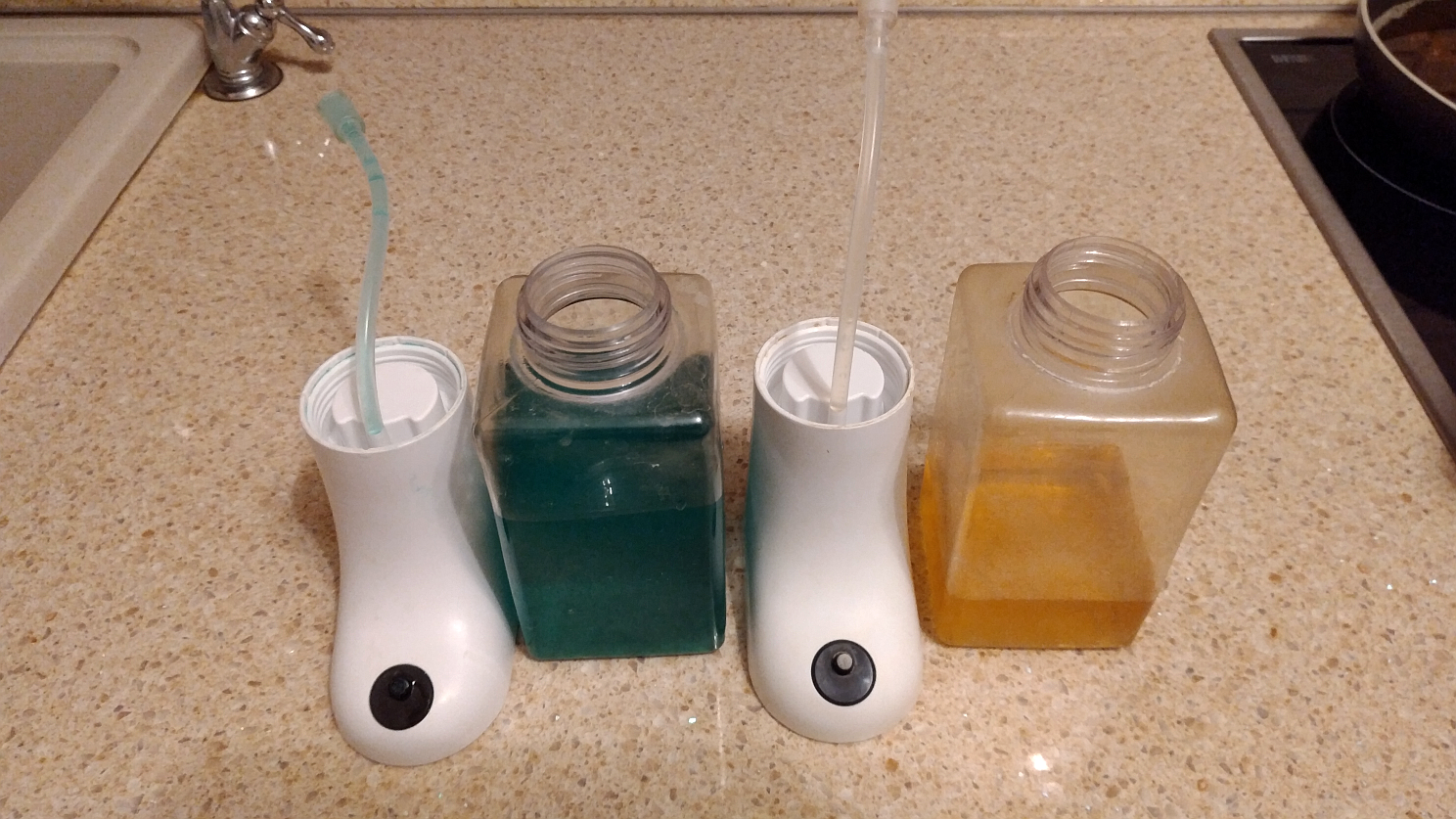 Фирма Xiaomi выпускает очень прикольные и удобные сенсорные дозаторы для пены. Сам дозатор вместе с заправленным баллоном с жидким мылом можно купить в пределах 1500 р, но заправить самому баллон потом практически невозможно, а продаются они отдельно в районе 500 р. штука.