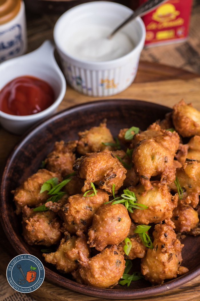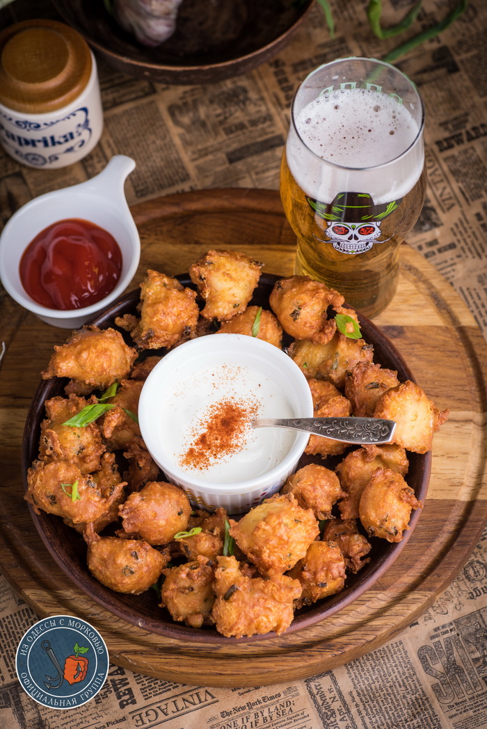 Здравствуй, честной народ. Ассортимент пивной закуси весьма разнообразен и многогранен: тут вам и простые чипсы, сухарики и орешки, кольца кальмара и луковые, море разной рыбы и соленых морепродуктов, разнообразные колбаски, кабанос, жареный сыр и уйма всего прочего- и нет счета этим спутникам холодного бокала с пивом. Но вот что делать, если в пиво в холодильнике есть, а чего-то подходящего на закуску нет, а в холодильнике- плюс\минус стандартный бутербродный набор? Однажды у меня тоже возник такой вопрос. Вот тут и появляется ответ в виде популярной закуски, известной под общим названием «cheese fritters».
