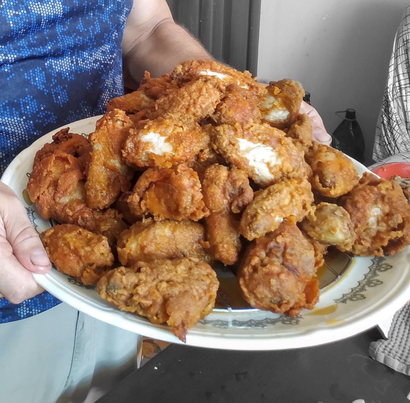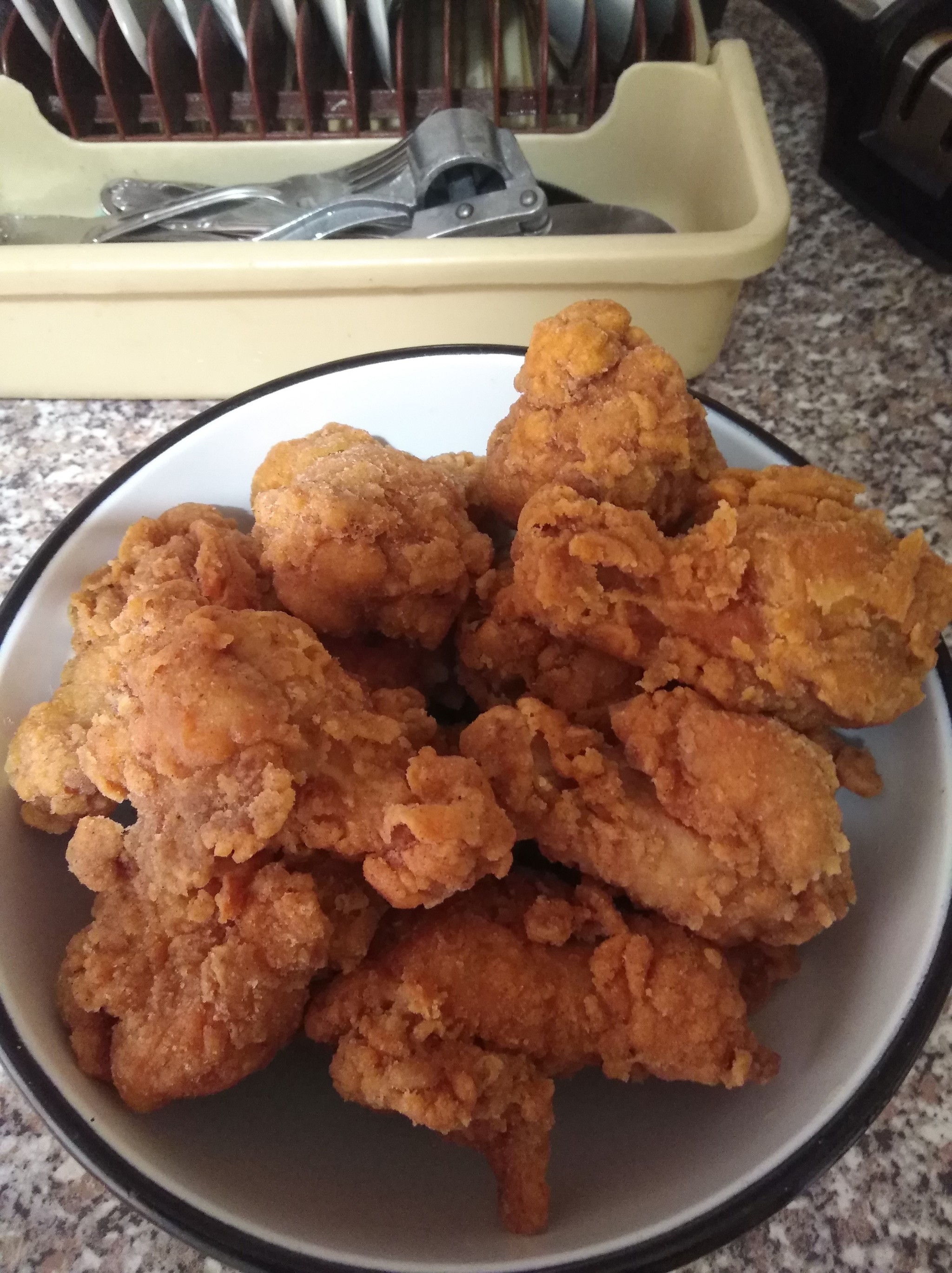 Все граммовки указаны на 3кг курицы, цена указана без учета 2л растительного масла для фритюра (у меня оно было) и пенных напитков)) Курицу покупал в одной из мясных лавок моего города (крылья за кг 120р, голень за кг 160р), в гипермаркетах будет немного дороже.